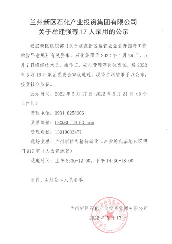 248cc永利集团关于牟建强等17人任命的公示