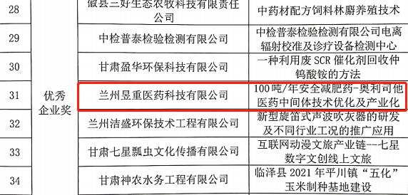 克日,,从第十一届中国立异创业大赛(甘肃赛区)组委会获悉,,兰州新区专精特新化工工业孵化基地的两家入驻企业——甘肃峻茂新质料科技有限公司和兰州昱重医药科技有限公司划分荣获第十一届中国立异创业大赛(甘肃赛区)优异企业奖。。。。。