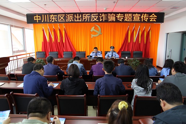 为加大攻击电信诈骗犯法力度,,提高企业员工的防诈反诈意识,,实现工业工人步队定心事情、舒心生涯的目的,,6月16日,,石投集团约请中川东区派出所民警在集团公司开展“反电诈”相关知识培训及宣传运动,,集团公司30余名干部职工加入运动。。。。通过培训及宣传,,进一步增强干部职工识别意识和提防能力,,镌汰新型电信网络违法犯法爆发。。。。