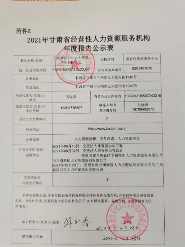 凭证甘肃省人力资源和社会包管厅《关于开展2021年度全省谋划性人力资源效劳机构年度报告公示事情的通知》(甘人社通〔2022〕44号)文件要求,,,,现对兰州新区248cc永利集团人力资源培训有限公司2021年度报告举行公示,,,,接受社会监视。。。详见年度报告公示表。。。