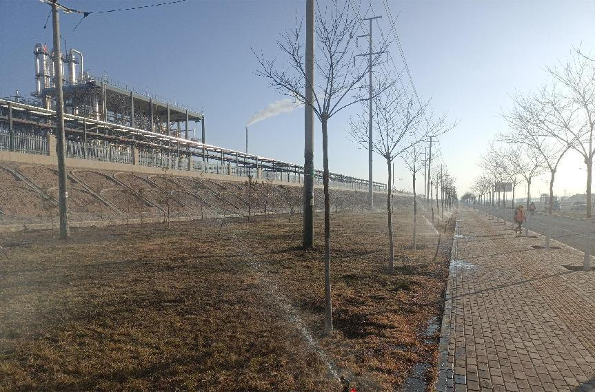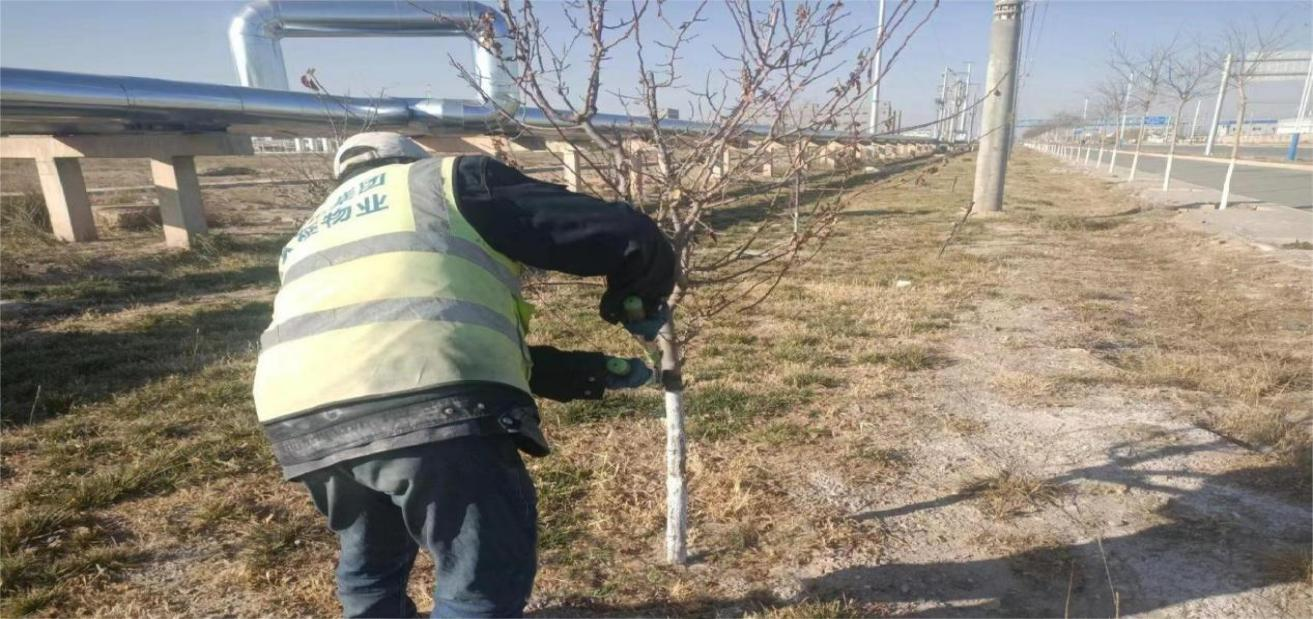 克日,,,,为增强化工园区冬季绿化养护治理,,,,进一步提高绿化景观效果和管护质量,,,,兰州新区久泰物业公司多措并举开展冬季绿化养护治理事情,,,,全心组织养护单位事情职员,,,,对各辖区内管护绿地的乔木、灌木、草坪特殊是新植树木实时举行冬灌,,,,并做好枯木杂草整理修剪事情,,,,以防苗木遭受低温冻害和来年春旱及病虫害,,,,周全提升绿化养护治理水平。。