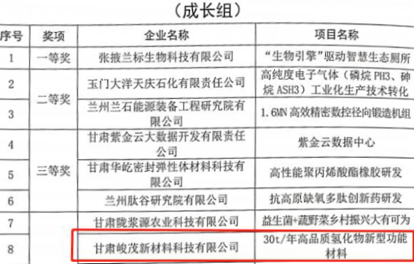克日,, ,从第十一届中国立异创业大赛(甘肃赛区)组委会获悉,, ,兰州新区专精特新化工工业孵化基地的两家入驻企业——甘肃峻茂新质料科技有限公司和兰州昱重医药科技有限公司划分荣获第十一届中国立异创业大赛(甘肃赛区)优异企业奖。。。